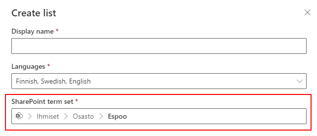 SharePoint term list child term