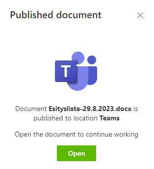 After document is published, source document is marked with information where it was published. Published document cannot be republished; document can be saved normally after this.