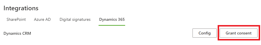 After Dynamics CRM url is provided admin consent can be granted for Kameleon API to access D365 on behalf of user