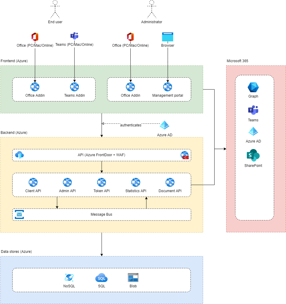 - Hosted in Microsoft Azure (utilizing PaaS services).