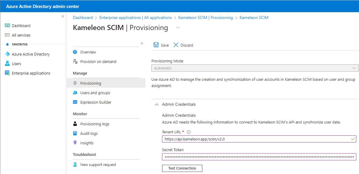 This article describes how Azure AD user provisioning can be enabled for Kameleon